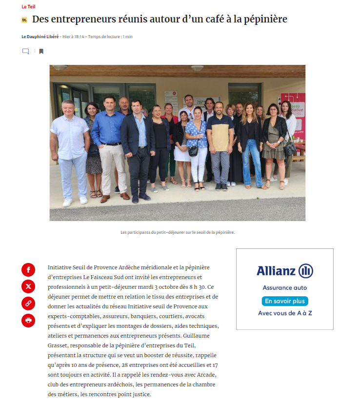 Initiative Seuil de Provence Ardèche Méridionale est une association loi 1901 qui existe depuis 2000. Nous sommes membre d’Initiative France, premier réseau associatif d’accompagnement et de financement de la création d’entreprise. - Devenir parrain / marraine